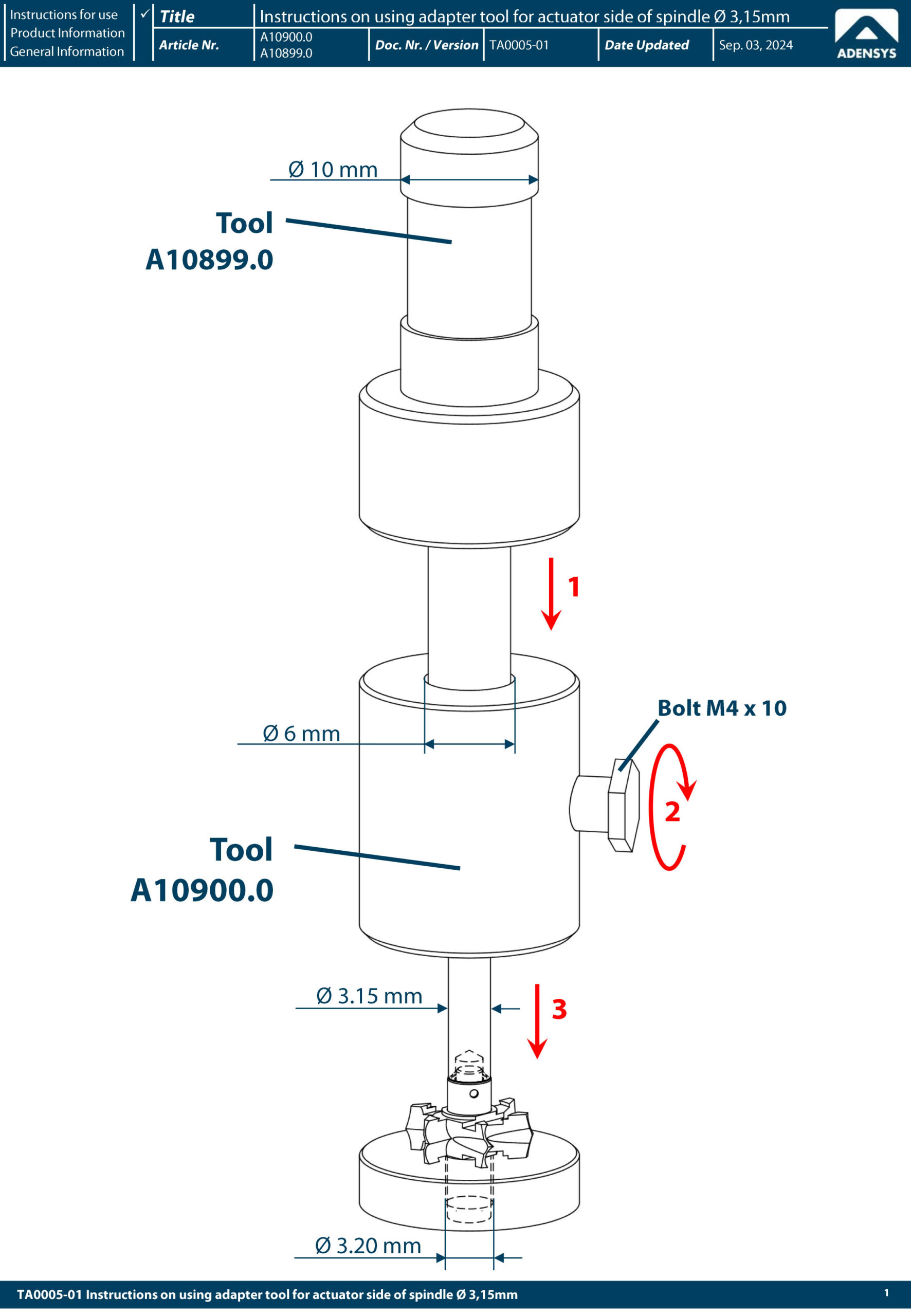 • Adapter tool for actuator side of spindle Ø3.05 / Ø2.00
